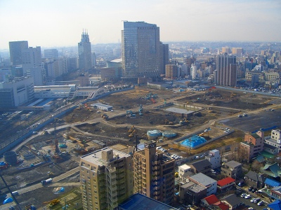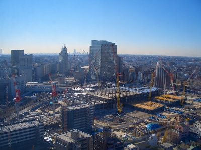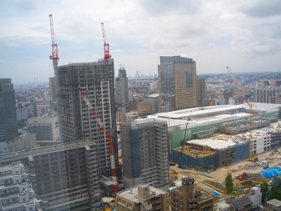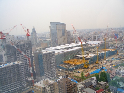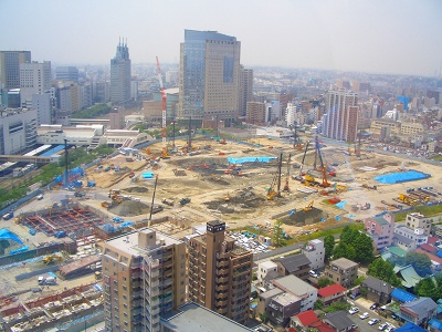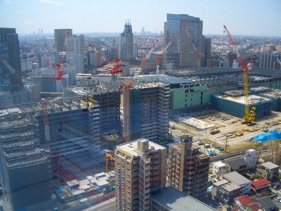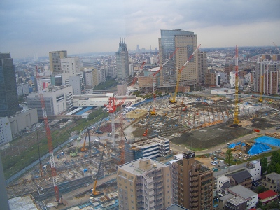 この写真は工事の進捗状況を東芝デバイスのあるソリッドスクウェアビルから変わり行く堀川町工場を定点観測したものである