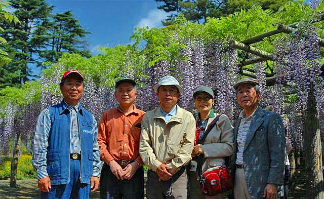 天気予報どおりの快晴で清清しい気分。当初は5月1日に予定していたが、藤の花がまだ満開までに至らずとの由で急遽3日延期をしたが天候の点からも大成功の変更であった。
