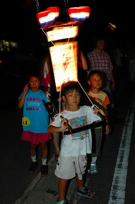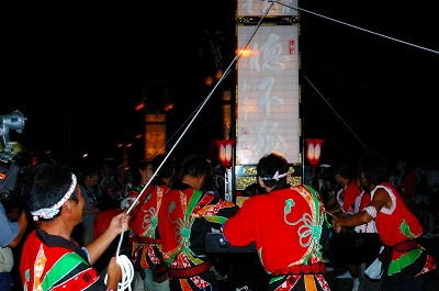 夜8時頃から各町のキリコが男神を住吉神社に送るため、八幡神社に迎えに来る。