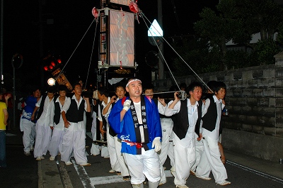 10時頃に八幡神社を出発した神輿が住吉神社の神殿に納まったのは、夜中の2時過ぎであった。