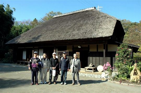 古民家では深作氏がスケッチのため離れ、その後は4人の散策となり、いよいよ紅葉のある広場へと出かけた。