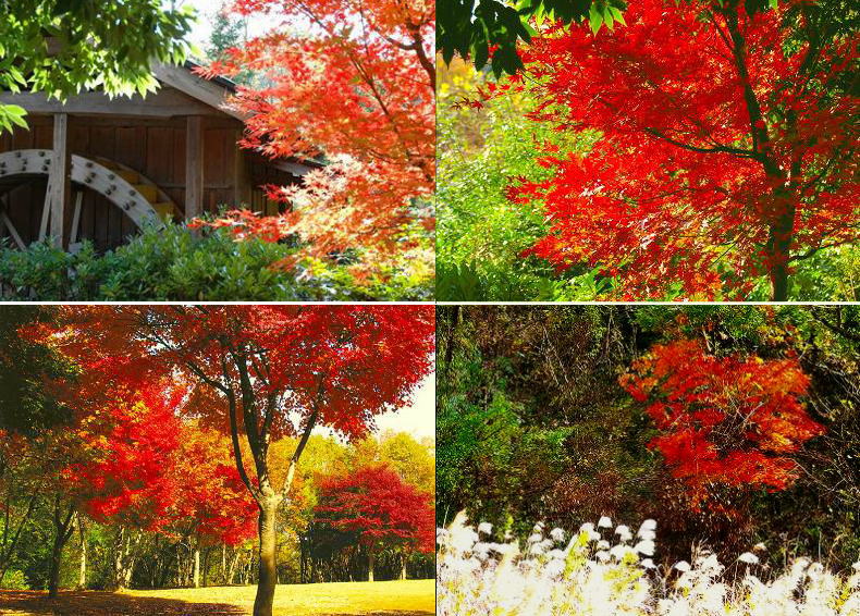 写真にあるとおり、「紅葉は今盛りなり」と言ったところでしょう。真っ赤、黄色、まんだらに染まった木などが
