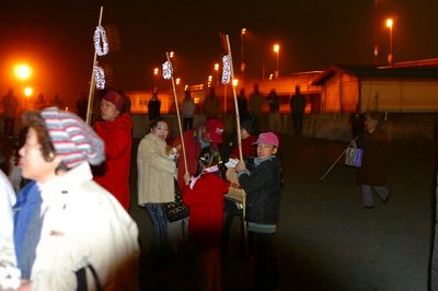 火が燃え上がった頃、海に入った青年たちと陸の子供たちの間で勇壮な綱引きが行われました。TVでも放映されるらしくライトで照らし出されていましたが、私のカメラがどうしたことかバッテリーが駄目になり写せませんでした。折角のチャンスを逃したのは非常に残念でした。この波打ち際の撮影を諦めて、再びどんど焼きのところへ行くとどうしたことかバッテリーが使えるようになっていました。寒さのためにバッテリーが働かなくなるとはとても考え付かなかったことです。丹頂鶴の撮影はデジカメでは無理かもと皆で話し合いました。