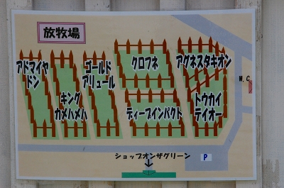 見学場に入ると、その日見学できる馬の名前と放牧地の割り当てが表示されたパネルがありました。