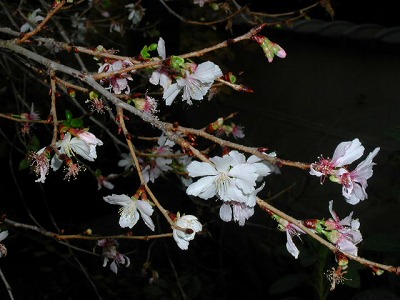 この桜は十月桜という品種で、十月から十一月にかけて咲き、春にまた咲くという品種らしいです。