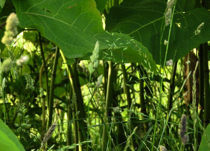 「このいたどりの茂みの中に小鳥の巣が一杯あるんだ。雛たちが巣立ちするのを待っているのさ」
