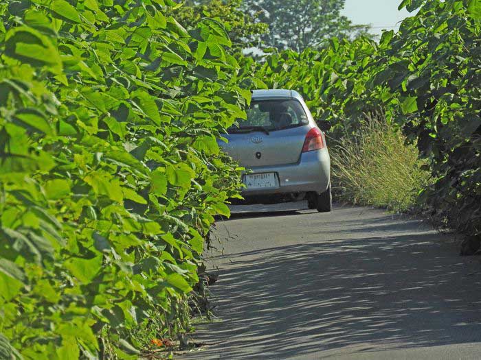 ときどき車も通るが、両側からせり出したいたどりの葉っぱを擦りながら通ってゆく。