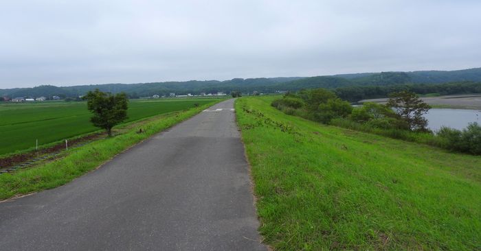 数日後、この堤防の道へ行ってみると、あんなに茂っていたいたどりが綺麗さっぱりと刈り取られていた。道の両側には田んぼと川が見えるようになっていた。