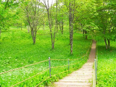 やがて微かにすずらんの香りが車の中に漂い始め、それがはっきりと感じられるようになった頃、眼前が急に開け群生地の駐車場に到着しました。