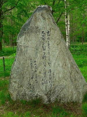 群生地の中の遊歩道を歩いていると、歌碑が立っていました。