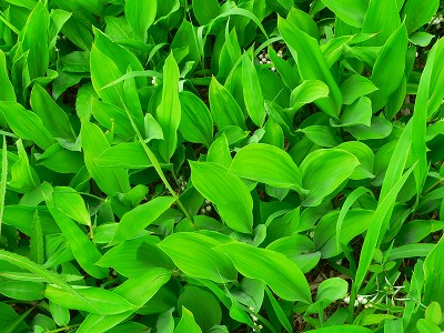 多少の笹、よもぎ、蕗などが混じって生えてはいましたが、広大な原生林の下草が全部すずらん