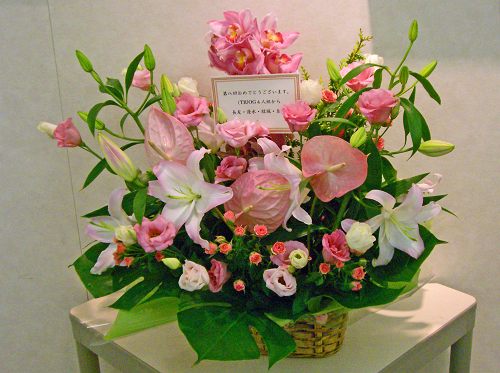 12;05無事開会を宣言、既に4人の元トランジスタ・ガールが記帳済み。立派なお花を頂いた。