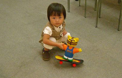 3日目、進藤さんの作品(おもちゃ〜と言っては失礼かな)は何時もながら大人気、ボタンを押したり、団扇で扇いだり、手に持って転がす事も出来ると言うのが良いらしい。