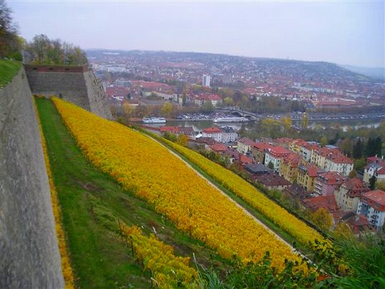 「ヴュルツブルク」がある。丘の上にある古城「マリエンブルク城」の堅牢な城壁の直ぐ下は「フランケンワイン」のブドウ畑だ。