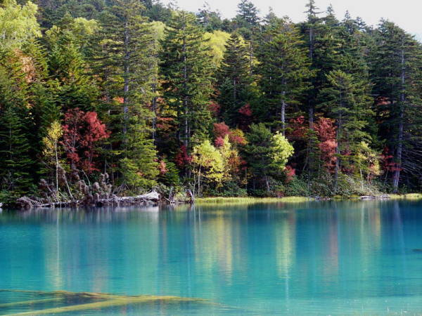 湖に弱酸性の温泉が湧き出していて、その成分が独特の湖水の色を示す原因と言