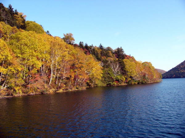 ここは湖岸に下りられる範囲が狭いので、紅葉鑑賞には遊覧船に乗るのがベストだが、