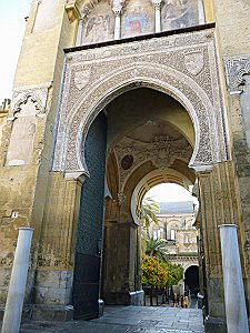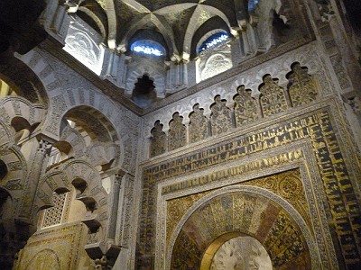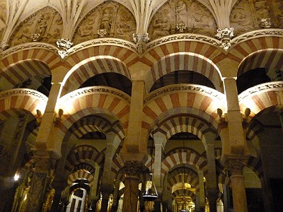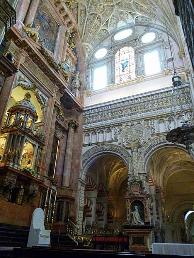内部は両方の文化が華やかに競い合うように繰り広げられていて実に美しい。下の左は赤と白の馬蹄型アーチのモスク。