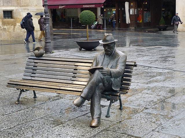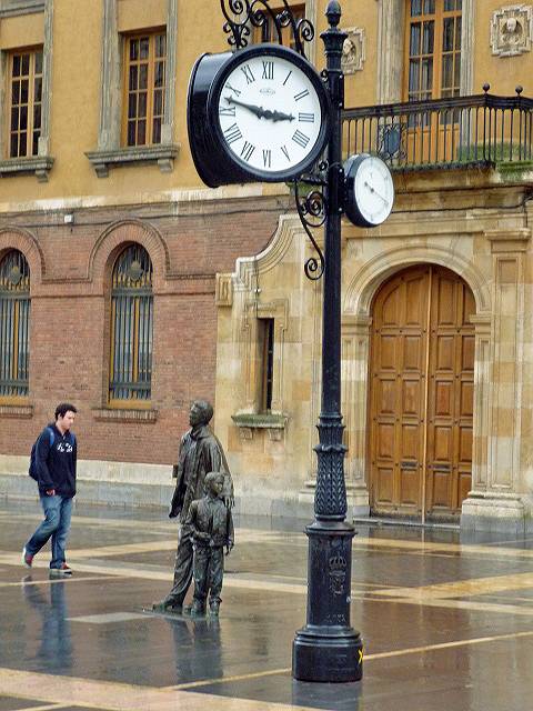 街の至る所に何気なく像が設置されていて楽しい。上の写真は時計の下に親子の像が設置されている。