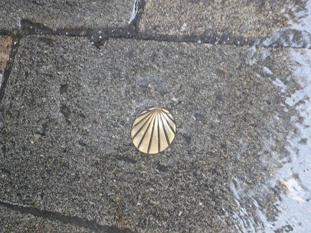 街のいたる所にある貝殻の印(ヤコブ印)この印の方向が巡礼の道を指し示している