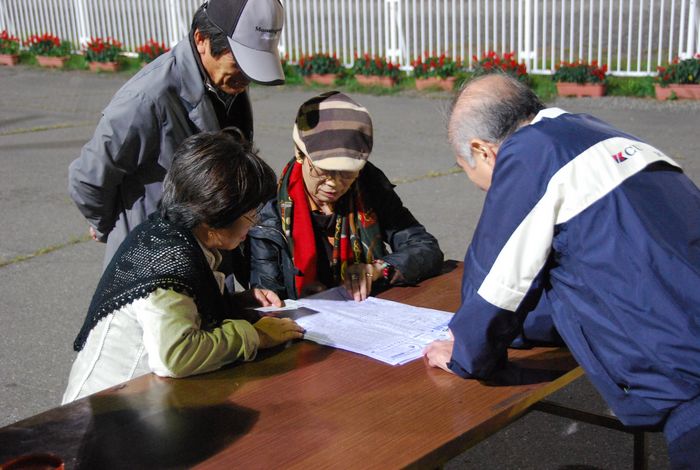 帯広競馬場でばんえい競馬の馬券を検討(2008年8月)